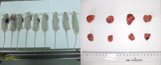 2. 前肢腋下部位附近皮下種植結(jié)腸癌細(xì)胞,濃度1X107個(gè)/100ul
