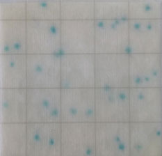 在測試片紙片上生長的藍(lán)綠色點即為單增李斯特菌陽性,若紙片上不生長或者為其他顏色點即為單增李斯特菌陰性。
